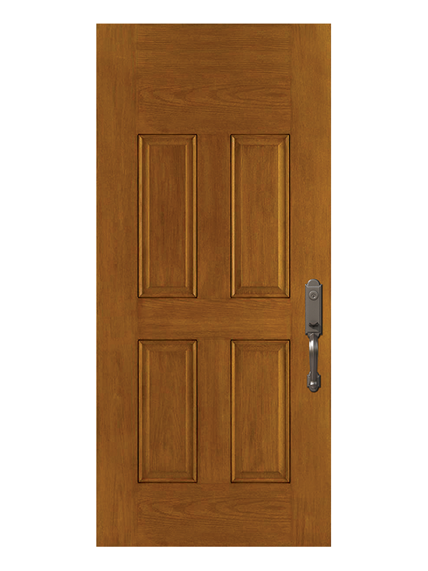 The 4-panel door is well suited to windowed uses and it can accommodates five sizes of doorglass: 22x9, 22x9 planked, 22x36, 8x36 and half-moon.